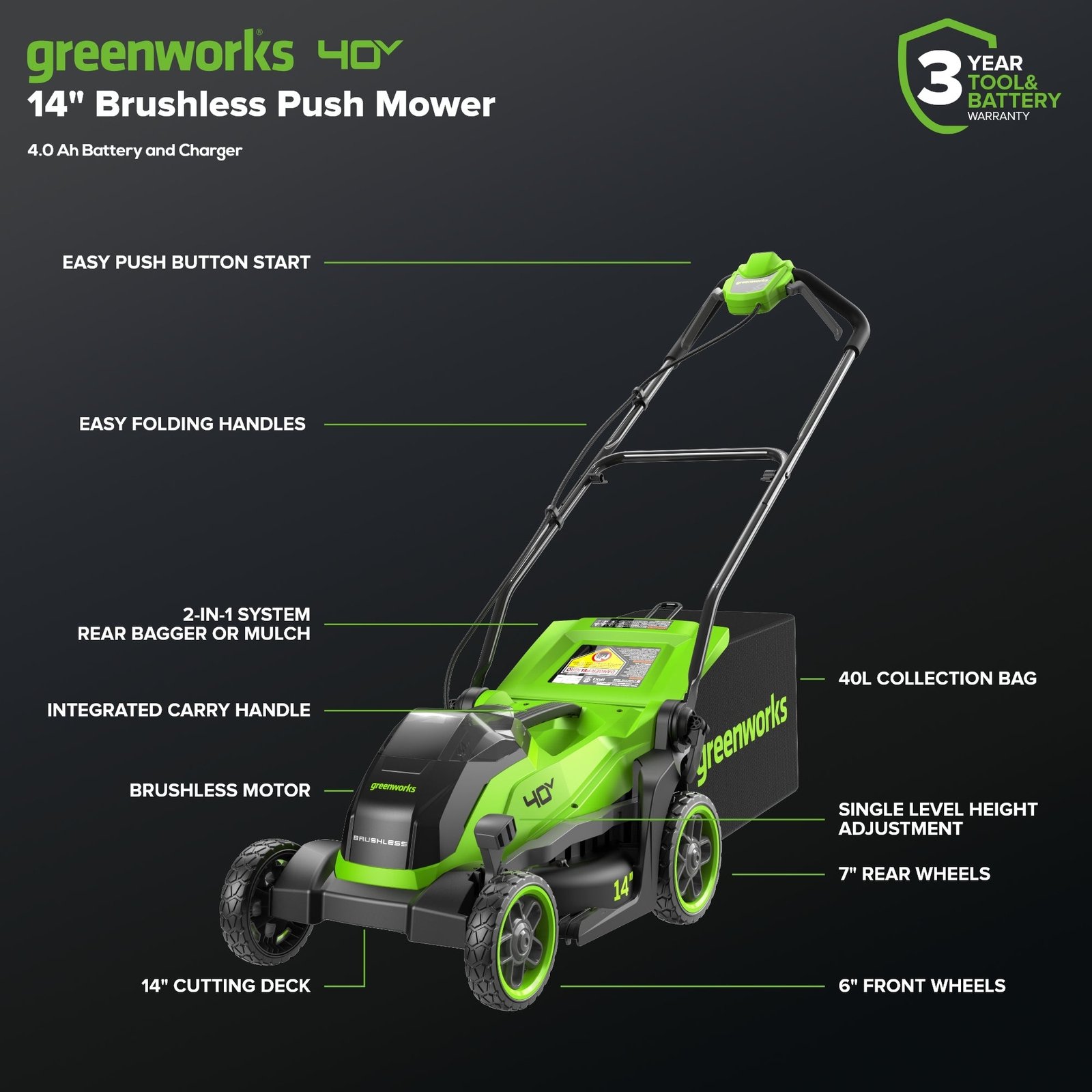 40V 20″ Cordless Battery 4-in-1 Push Lawn Mower w/ 4.0Ah Battery & 2A Charger