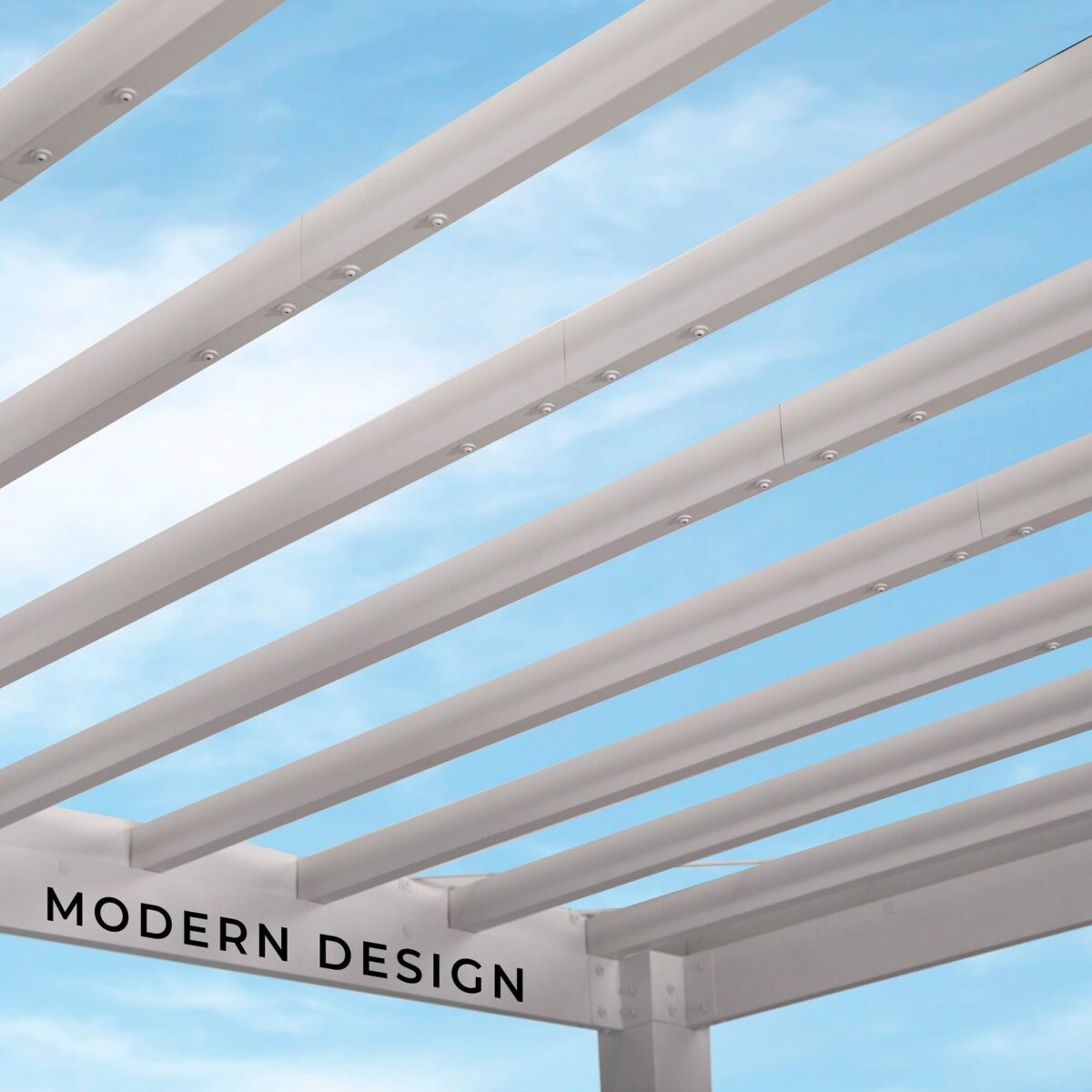 With a modern design and sleek, contemporary white finish — plus year-round durability — it’s a showstopper that literally stands apart. Powder coated for maintenance-free longevity, PRO-TECT™ Tested and Proven to withstand winds up to 100 mph*, and backed by a 5 year limited warranty, it’s the height of durable elegance in outdoor living!