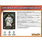 The 2023/24 Topps UEFA Club Competitions Merlin Chrome Soccer Hobby Case brings the magic of the Merlin series to soccer collectors, featuring stunning chrome designs that highlight Europe’s top clubs and players. With a focus on the brightest stars and rising talents in UEFA competitions, this set offers both seasoned collectors and newcomers a chance to chase limited parallels and on-card signatures. Perfect for soccer enthusiasts looking to add rare, high-quality cards to their collections!