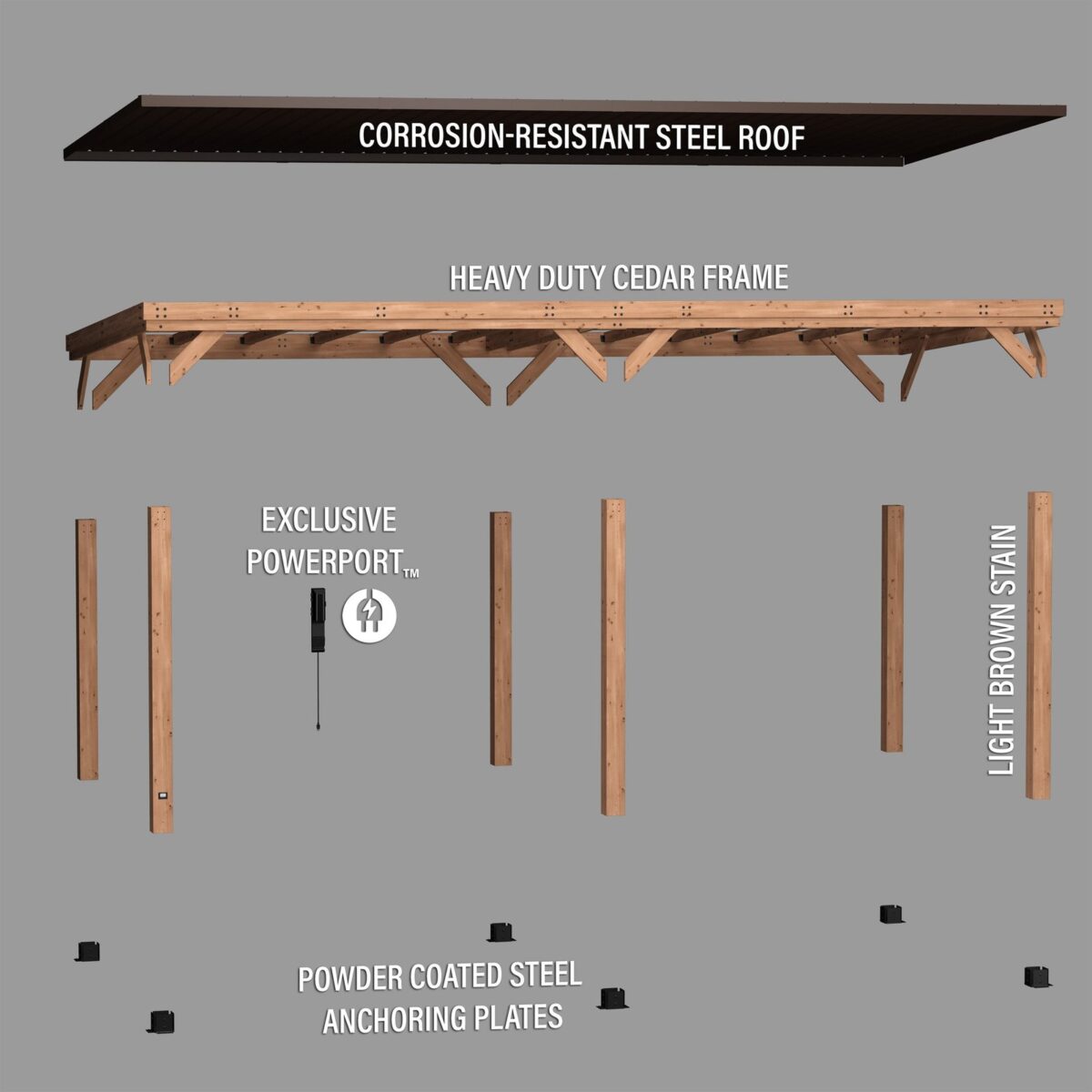We use only premium, weather-resistant materials selected for durability and longevity: