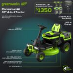 60V 30” CrossoverT Riding Lawn Tractor with (2) 8.0 Ah, (2) 4.0 Ah Batteries & 600-Watt Charger