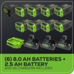 - What’s Included: Six (6) 8.0Ah Batteries, One (1) 2.5Ah Battery and Four (4) Chargers