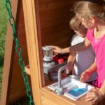 The more you look, the more you’ll find on this swing set. Tube slide, rock wall with ladder, play stove, balconies, the list goes on and on. All translating to fun times that go on and on too!