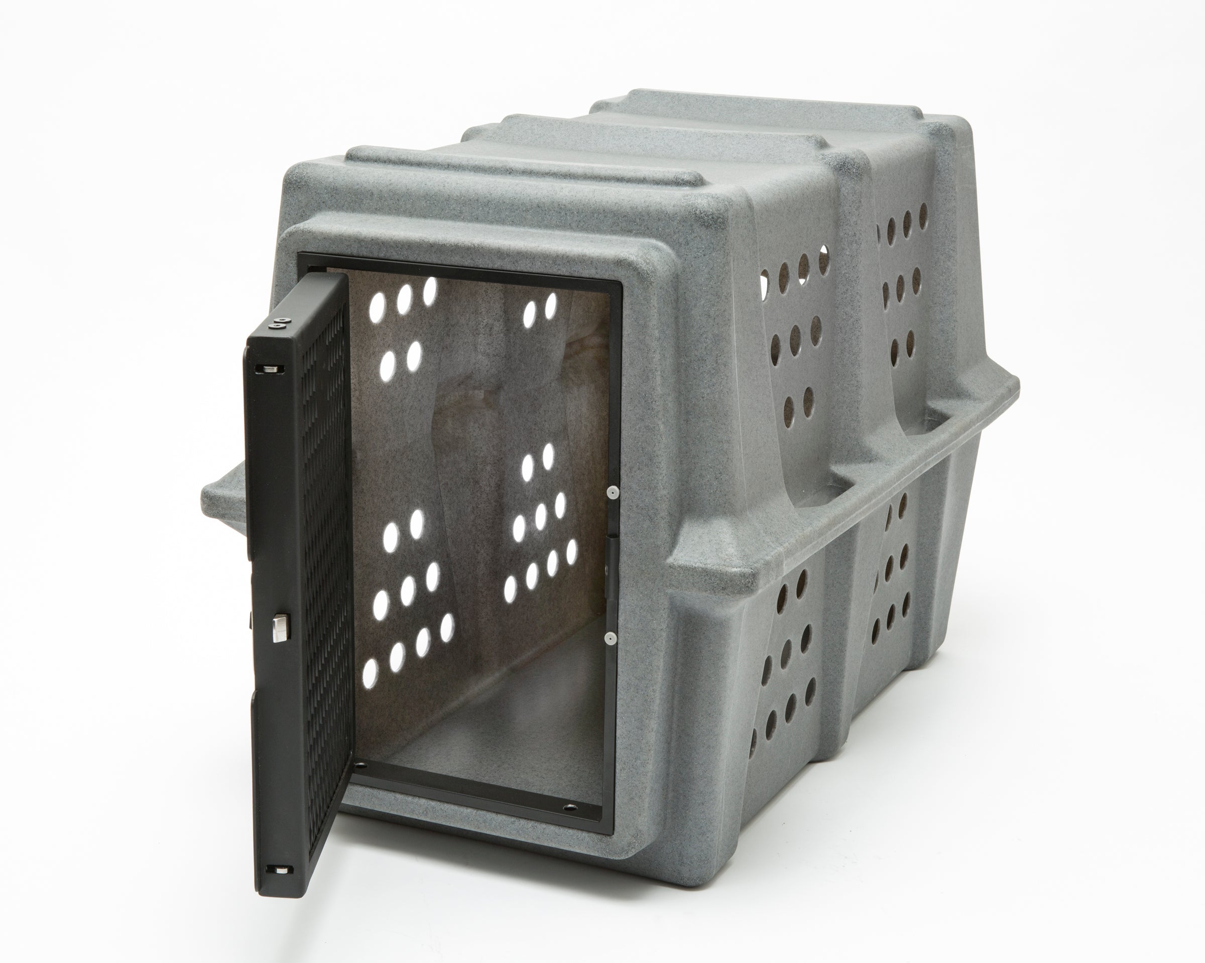 Designed with working dogs in mind, the Dakota 283 Hero Kennel is named for the heroes it was built to protect. Originally for Military and Police dogs, the Hero Kennel is molded from military-grade materials in one solid piece and provides an extra layer of security with a triple-locking, stainless steel door that can be closed with one hand.