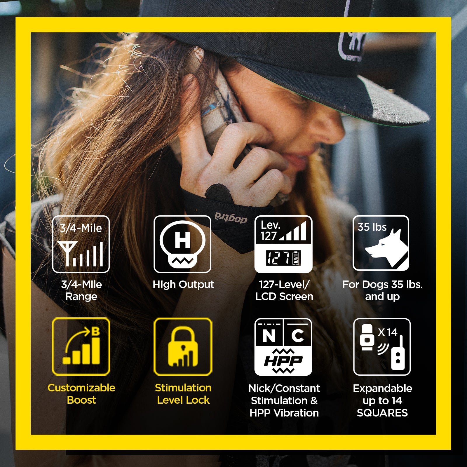 - 127 Low to High Power Stimulation – High Output for strong, large dogs 35lbs & up