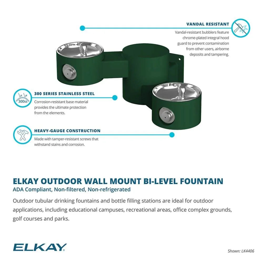 Elkay LK4406EVG Wall-Mounted Bi-Level Outdoor Drinking Fountain