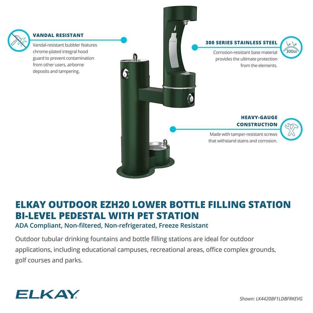 Elkay LK4420BF1LDBFRKEVG ezH2O® Bi-Level Pedestal Bottle Filling Station with Pet Fountain