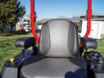 - Foot-operated deck lift with adjustable pedal for cutting heights between 1.5″ – 4.5″
