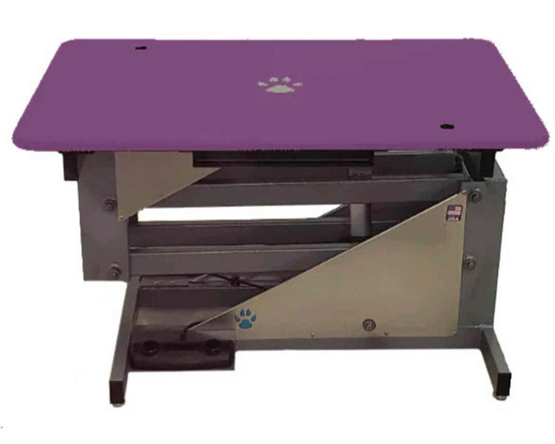 The frame is powder coated in a sleek charcoal grey and is accented with stainless steel and turquoise paw prints. The table top is sprayed with a non-skid textured sealant and includes two scissor holes and two clipper blade holders that are mounted under the tabletop. Steel-reinforced for maximum strength and durability, the tabletop can also be sprayed in a color to match your decor! The electric pump offers a quiet and smooth up-down motion and includes a foot pedal on both sides. Includes 4 adjustable leg levelers.