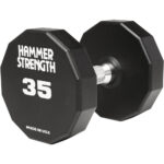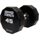 Hammer Strength premium urethane dumbbells are made in the US and offer superior durability with an injection-molded exterior and high-grade steel. Precision machined stainless steel handles and high-grade steel heads, protected by the industry’s best materials for nearly indestructible performance.