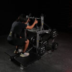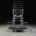 Front and rear weight rods allow for large weight loads and four belt anchor points provide varying resistance ratios. Wide, dual foot platforms include a separation gap to help prevent marring from the belt and chain. The Belt Squat also features band pegs (with nearly 1:1 load effect when used), long handles to accommodate users of all sizes, and a storage hanger for the belt and hook for added convenience.