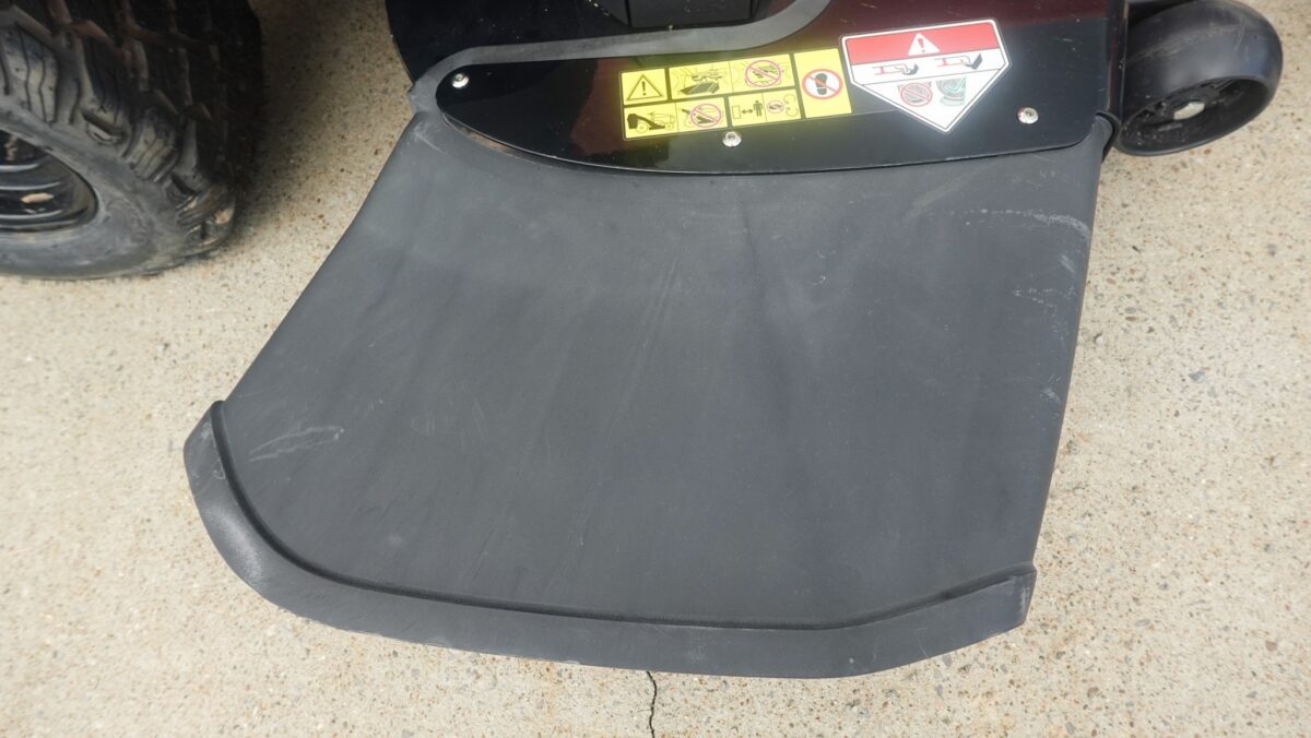 This product has minor cosmetic wear: faded paint, blemishes on seat, stickers peeling, scratches on chute. This product has never been used in any way and still has full factory warranty. This product has never cut grass or been sold to any customer before being sold to you.