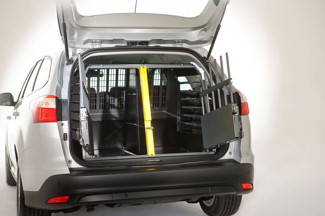 The MIM Safe Variocage is made of steel with telescopic tubes and two individual parts for the floor and roof, which allows for adjustment of the cage length. This adjustable feature also benefits crash safety by working with the vehicle’s crumple zone. In a rear-end collision, the floors, ceilings and the telescopic tubes will be pushed together. This reduces the risk of injury for all vehicle passengers, dogs and humans.