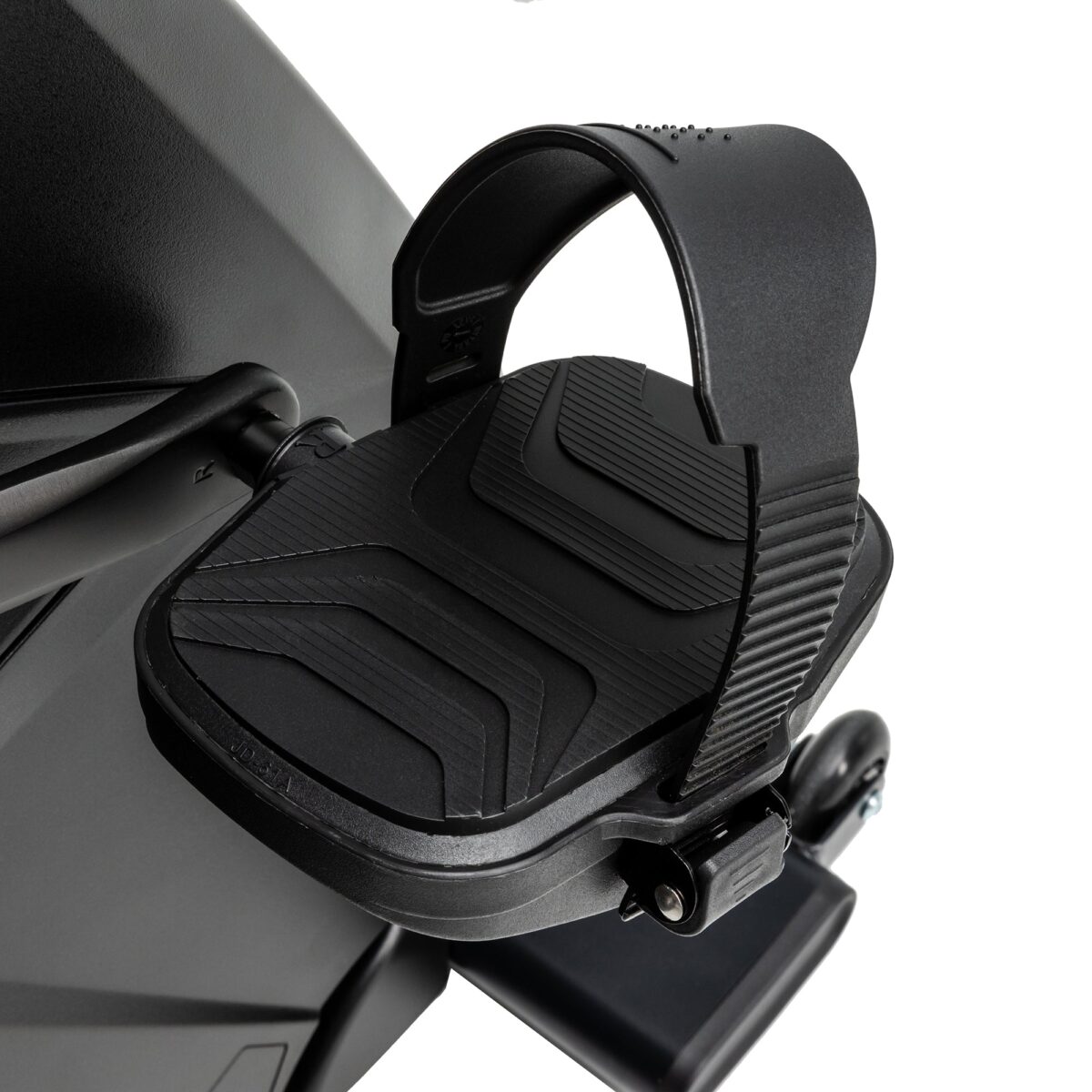 - Pedals: Oversized with fast-latching strap system, 2ยฐ inward tilt for ergonomic positioning