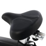 Users benefit from a fully adjustable seat (forward/backward, up/down), wide oversized pedals with secure straps, and an ergonomic upright bike stance that fits many body types.