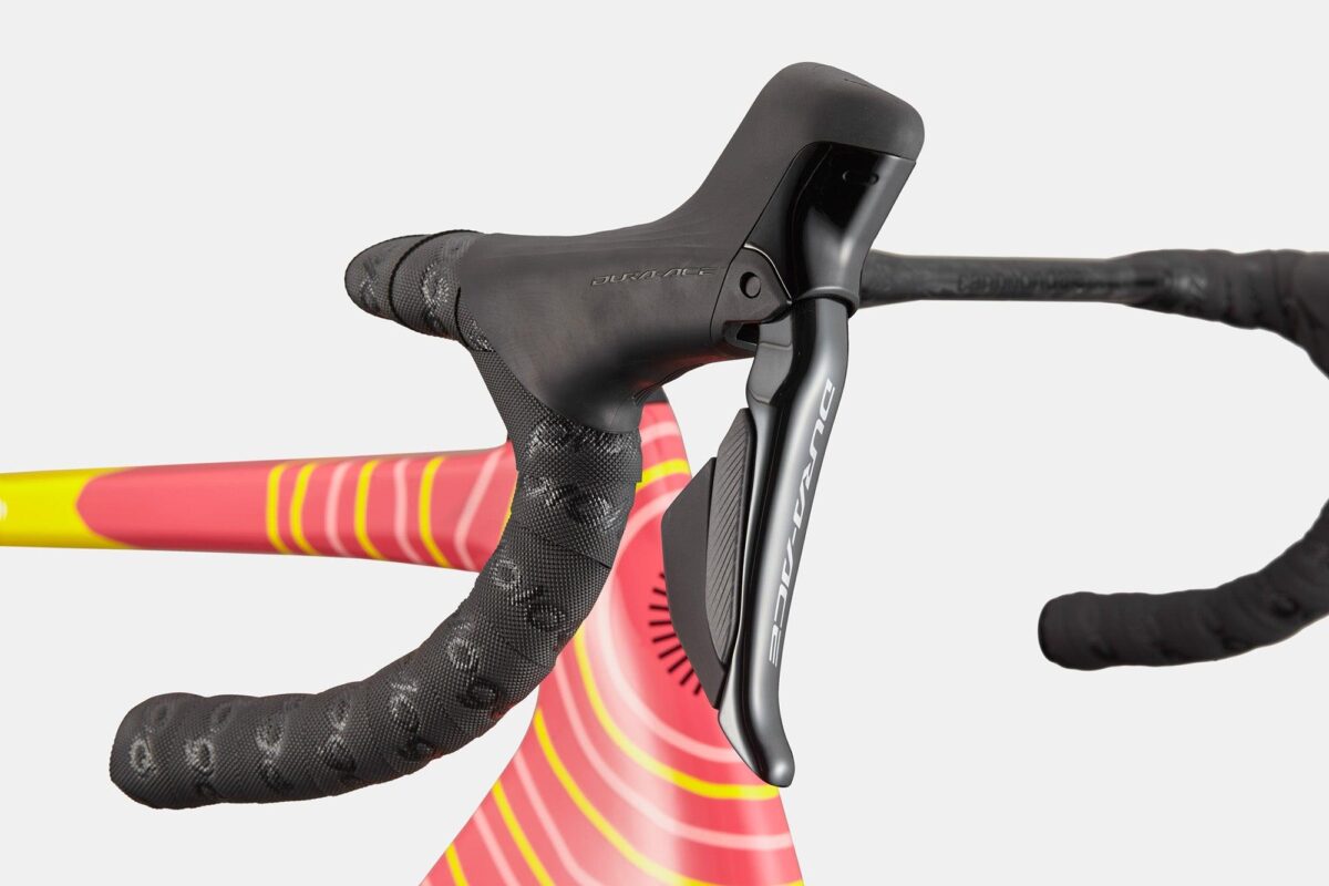 There are “team edition” bikes – with little more than pro paint and decals – and then there are real, 100%-team-spec, pro-ridden race bikes, like this replica of the LAB71 SuperSix EVO piloted by EF Education First–EasyPost and EF Education First–Cannondale. It’s a true pro machine, built on an ultra-light Series 0 carbon construction frame, with Shimano Dura-Ace Di2, an FSA K-Force Team Edition carbon, our SystemBar R-One one-piece carbon cockpit, and Vision Metron 60 SL wheels.